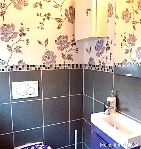Die Wände sind modern tapeziert/ hell gestrichen.