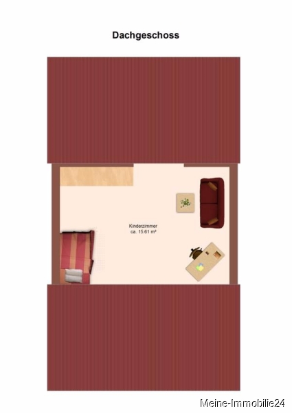 Das Dachgeschoss ist ausgebaut und wird zur Zeit als ein weiteres Kinderzimmer ( ca. 11 m² ) genutzt.