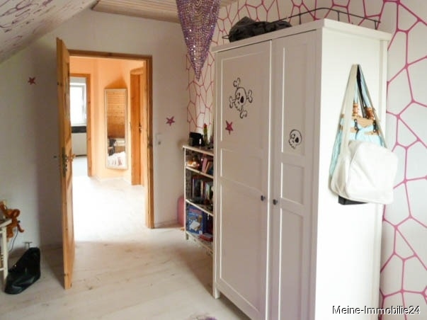 Über eine Vollholztreppe erreichen Sie den Flur im Obergeschoss. Hier stehen Ihnen zwei Kinderzimmer mit je