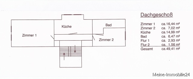 DG: 3 Zimmer 49,41 m2 und ein Raum für ein evt. Bad/WC