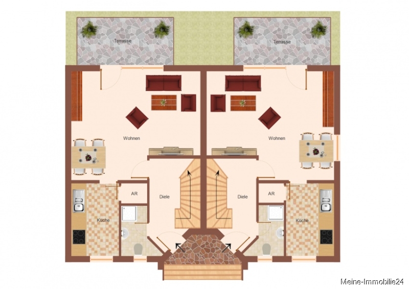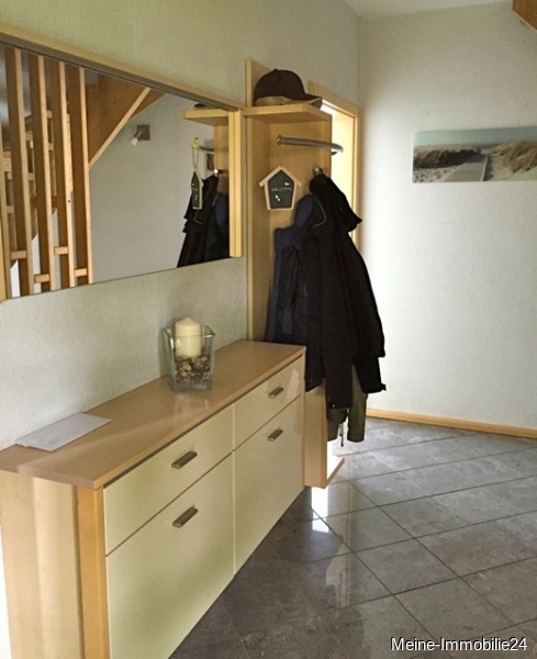 Hier stehen Ihnen der Eingangsbereich mit Flur und Garderobe, Gäste-WC mit Dusche, das Wohnzimmer mit Kamin und Zugang auf die Süd-Terrasse, die Küche mit moderner Einbauküche und einem Vorratsraum zur Verfügung.