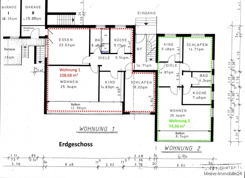 Wohnung 1 mit 4 Zimmern und 108,68 m² (vermietet) im EG