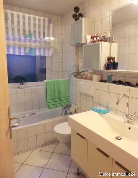 - 1 Badezimmer mit Bade-/Duschwanne, Waschbecken mit Unterschrank, Handtuchheizung und WC