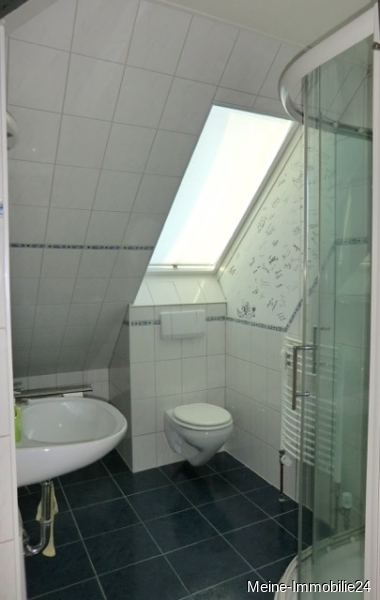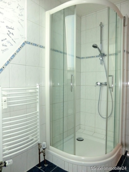 - 1 Badezimmer mit Dusche, Waschbecken, Spiegelschrank, WC, Handtuchheizung, Fußbodenheizung nur im Bad, WM-Anschluß
