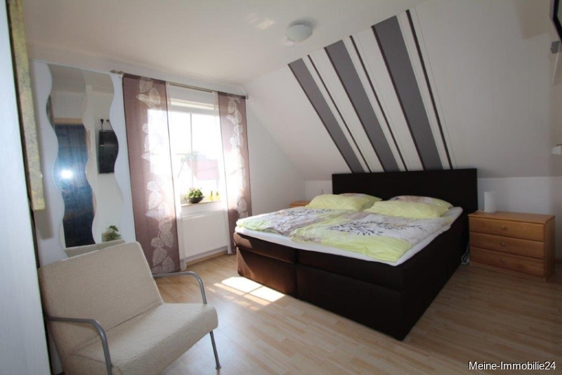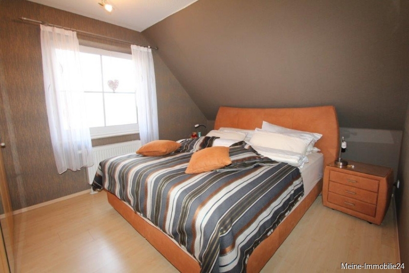 Der Fußboden im OG ist überwiegend mit Laminat und das Bad mit Fliesen ausgelegt.