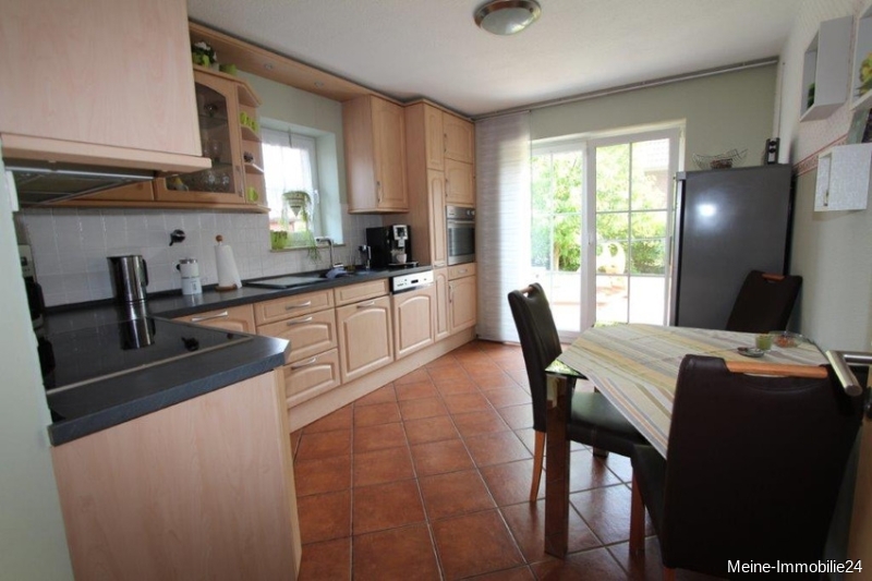 Die geräumige Küche mit Essbereich (13,66 m2) verfügt über eine hochwertige Einbauküche mit einem Ausgang auf die in Südrichtung angelegte Terrasse und in den Garten. Die Einbauküche mit elektrischen Geräten verbleibt im Haus und ist bereits im Kaufpreis enthalten. Sehr pracktisch ist auch ein Hauswirtschaftsraum mit Tageslicht (4,41 m2) gleich neben der Küche. Hier sind die Waschmaschine und der Wäschertrockner untergebracht.