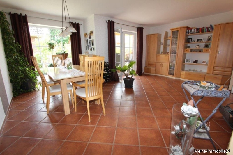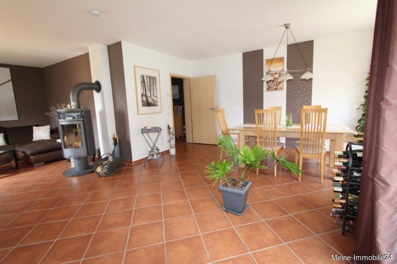 Auch von der Diele aus gelangen Sie in den großen Wohn- und Essbereich (38,92 m2) mit einem drehbaren Kamin und direktem Zugang zur überdachten Südterrasse.