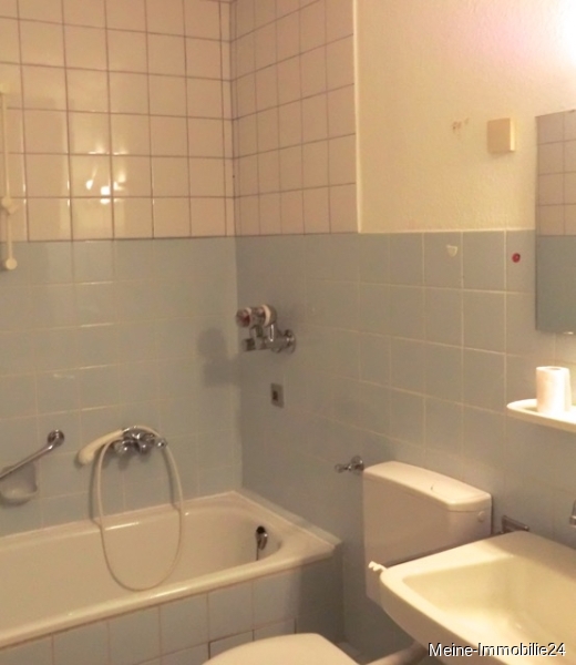 - Badezimmer mit Badewanne, Waschbecken, WC (älter) und mit WM-Anschluß