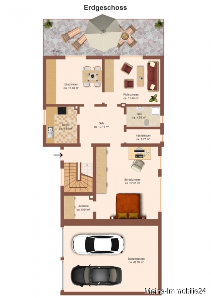 Zum Haus gehört eine Doppelgarage und 2 Einstellplätze vor der Doppelgarage.
