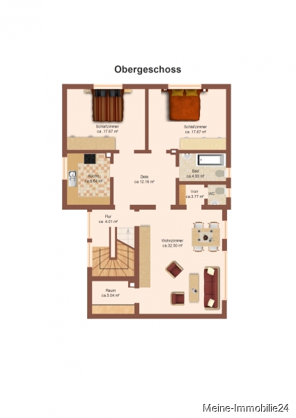 Diele, Flur, Wohnzimmer, Küche, Bad, Abstellraum, 2 Schlafzimmer