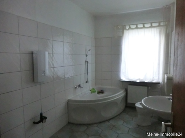 - Badezimmer mit Badewanne/Dusche, Waschbecken, WC