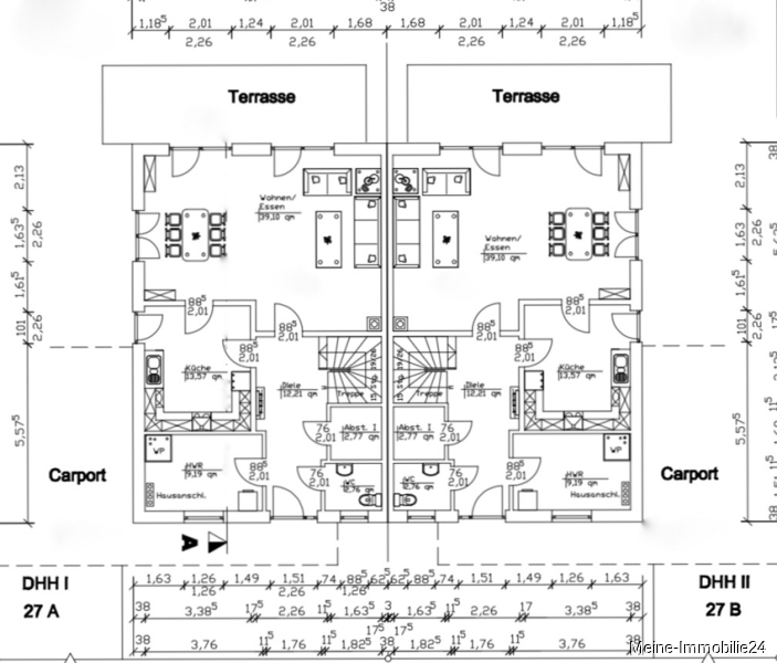 Der Wärme-/ Energiebedarf für die DH`s beträgt 24,5 kWh/(m2*a)