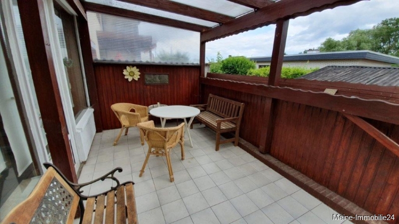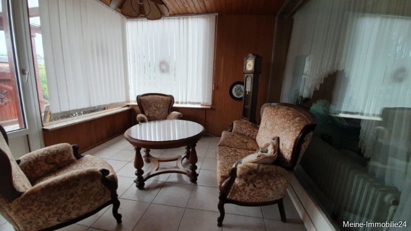 Eine Besonderheit ist der Wintergarten im Anbau von 1981 und die gleich anschließende überdachte Terrasse mit ca. 10 m². Im Gartenbereich verbleibt auch ein kleines Gartenhaus aus Holz.