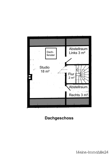 Im ausgebauten Dachgeschoss ein Studio / weiteres Zimmer (18 m²) und 2 Abstellräume mit jeweils 3 m².