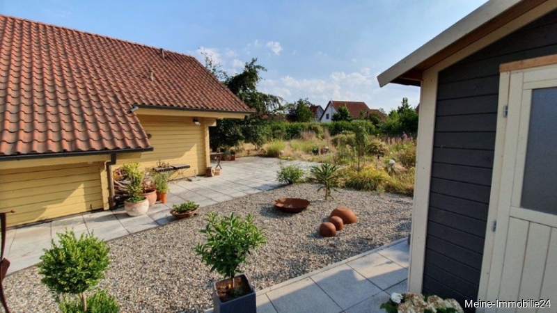 Das jetzt noch vorhandene gesamte Grundstück mit 1186 qm soll abgeteilt werden in: ein neues Baugrundstück mit ca. 750 qm und dem neu aufgeteilten Hausgrundstück mit ca. 436 qm inklusive dem Haus mit Terrassen, Hofeinfahrt, Stellplatzbereich und einem modernen Abstellschuppen (ca. 10 qm) aus Holz für Gartenmöbel und Fahrräder. Auch ein sehr schon angelegter Garten und Wegebereich sind schon auf dem Hausgrundsück vorhanden. Diese Haus ist ideal für 1 oder 2 Personen. Es strahlt durch seine Bauweise und Einrichtung sehr viel Gemütlichkeit aus. Die Einbauküche ist im Kaufpreis enthalten und verbleibt in Objekt. Laut Aussage der Eigentümerin ist der Energieverbrauch des Hauses sehr gering. Ein Energieausweis ist beantragt und liegt zur Besichtigung vor.