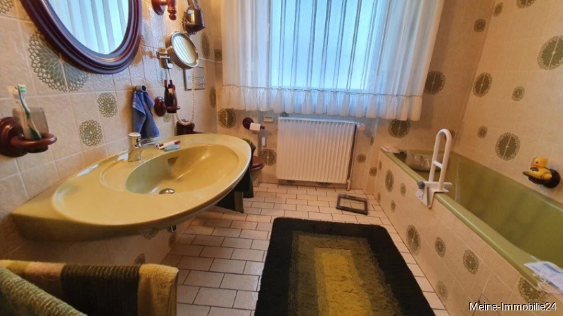 Über eine Treppe erreichen Sie das Obergeschoss. Ein zentraler Wohnbereich (25,46 m²) und eine Diele (16,21 m²) schaffen ein großzügiges Wohnen im Obergeschoss. Hier stehen Ihnen zwei geräumige Schlafzimmer (12,13 m² und 13,04 m²) zur Verfügung. Ein weiteres Tageslichtbad (6,04 m²) mit Badewanne, WT und WC ist vorhanden. Auch ein großer Abstellbereich / weiteres Zimmer (19,37 m²) kann hier genutzt werden. Das Obergeschoss wurde mit Teppich ausgelegt.