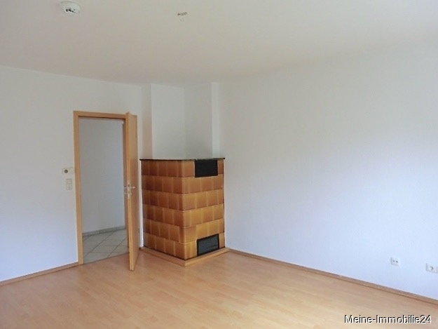 - Wohnzimmer mit Warmluft-Kachelkaminofen, kl. Balkon