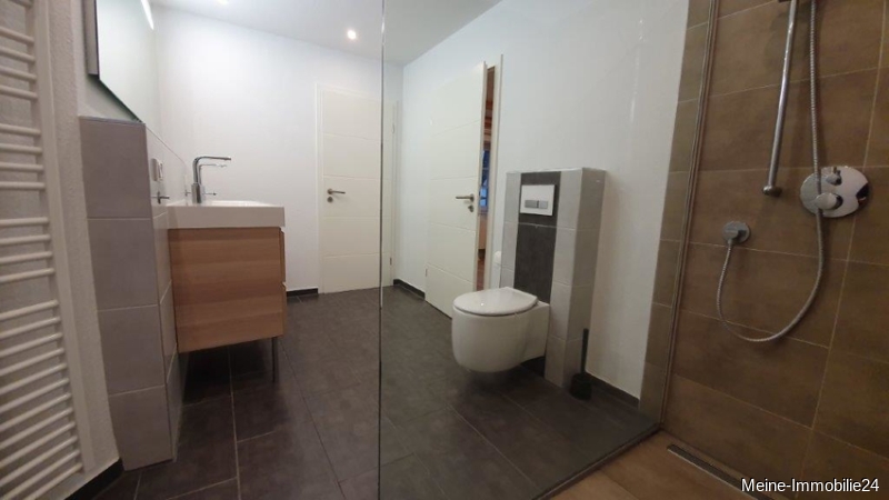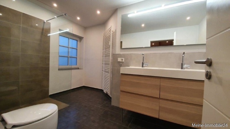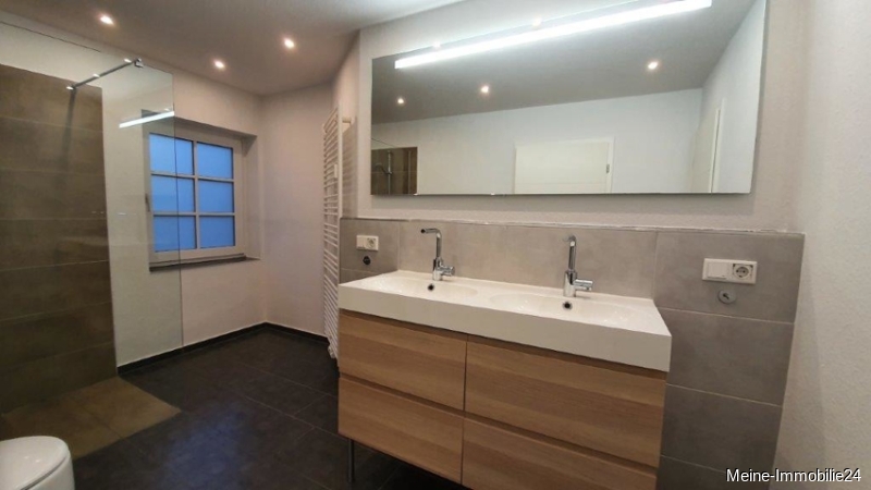 Objektbeschreibung Luxus Maisonette Wohnung mit großen Wohn-/ Ess-/ Küchenbereich mit 47 m² im Erdgeschoss. Großes neu saniertes Luxusbad ca. 9 m² mit bodentiefer Dusche, Doppelwaschtisch, WC und Handtuchheizkörper, ein kleiner Hauswirtschaftsraum mit Waschmaschinenanschluss, Flur und Eingangsbereich mit extra Abstellraum,