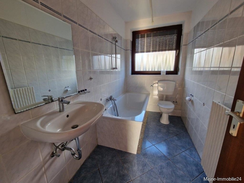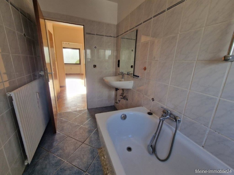 - Bad mit Waschtisch, Badewanne und WC in weiß