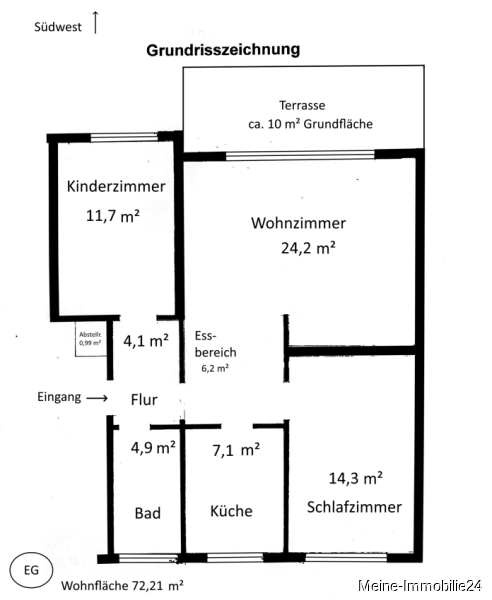 - Abstellraum 0,99 m² (Einbauschrank im Flur)