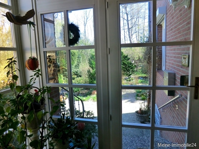 - Eingangsbereich mit Kunststoff-Haustür-/ Fenstern in weiss mit Sprossen und Vordach