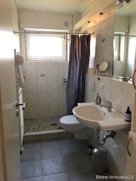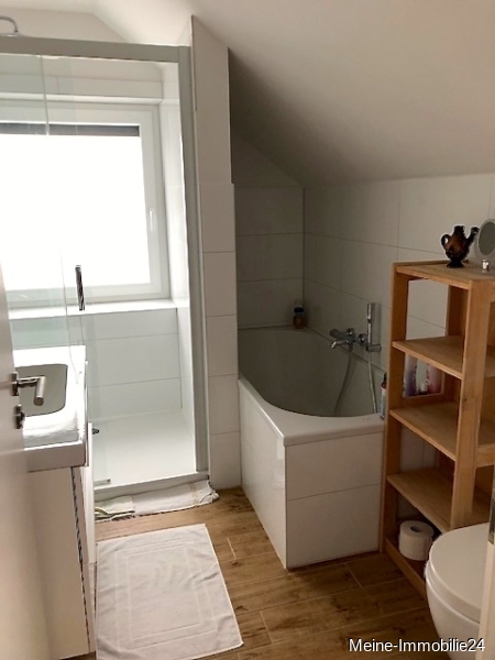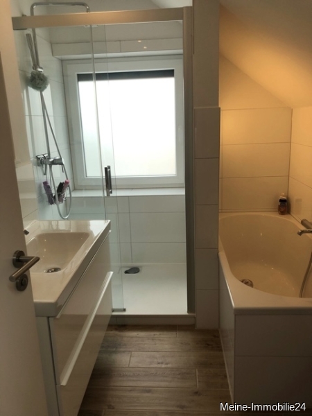 - Badezimmer aus 2019 mit Badewanne, ebenerdiger Dusche, Waschbecken-/ Schrank und WC