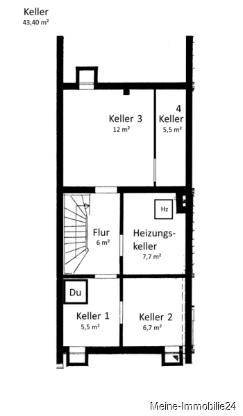 - KG 43 m² Nutzfläche 4 Kellerräume (1x mit Dusche), Heizungskeller, Flur, Treppenbereich