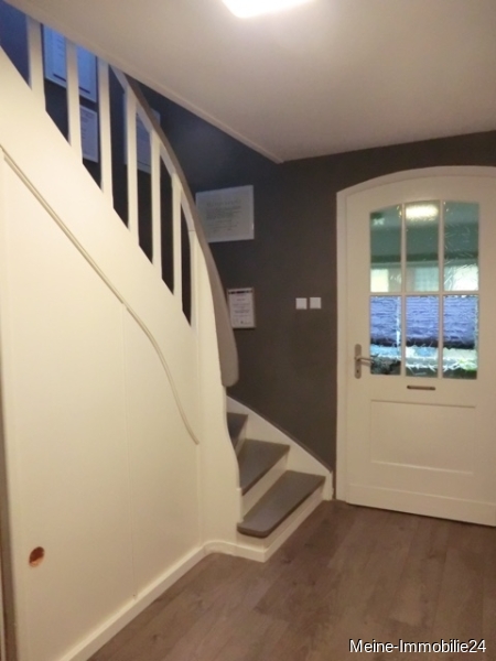 - Flur mit Vollholztreppe ins Obergeschoss, Bodenbelag Laminat von 2016, Wand geputzt und gestrichen