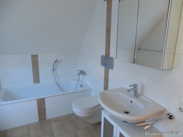 - Badezimmer mit Dusche, Badewanne, Waschbecken und WC