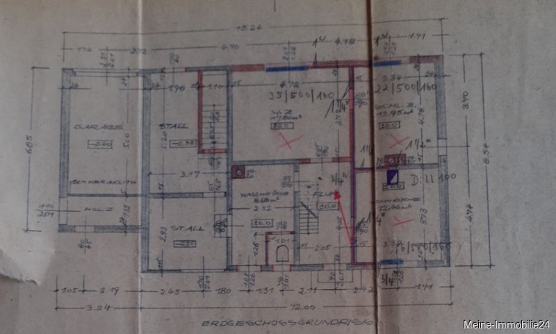 Objektbeschreibung Älteres Einfamilienhaus mit ca. 130 m² Wohnfläche, aufgeteilt in Erdgeschoss mit ca. 70 m² und Obergeschoss mit ca. 60 m², sowie einem 286 m² großen Eigentumsgrundstück.