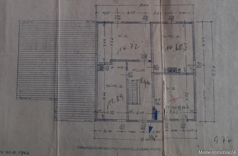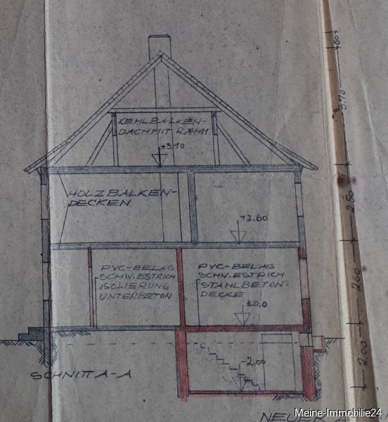 - die Deckenhöhen im Obergeschoss liegen zwischen 2,00 m. bis 2,10 m.