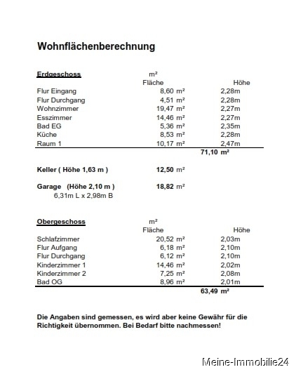 - die Deckenhöhen im EG liegen zwischen 2,25 m. bis 2,47 m.