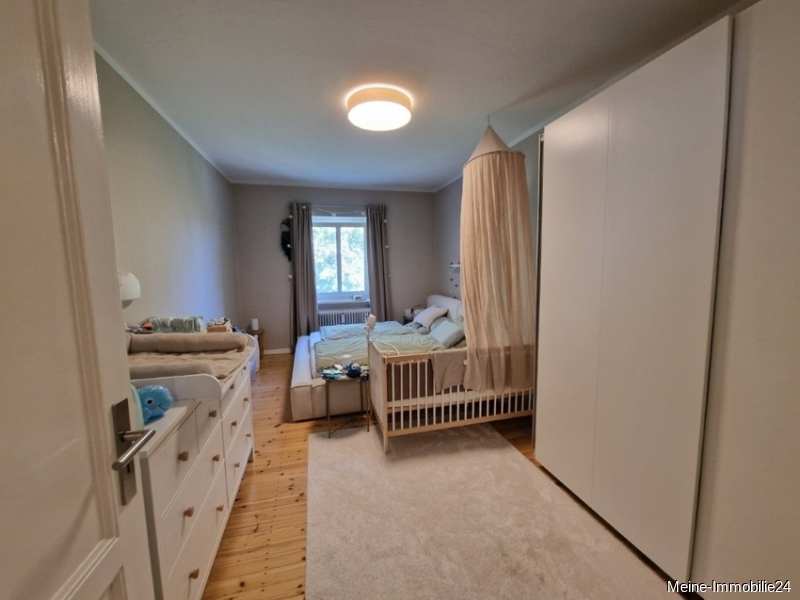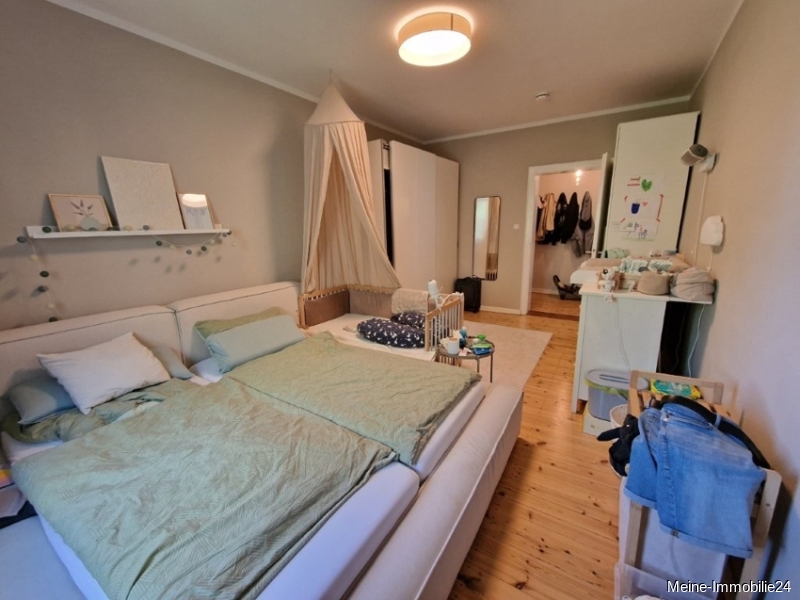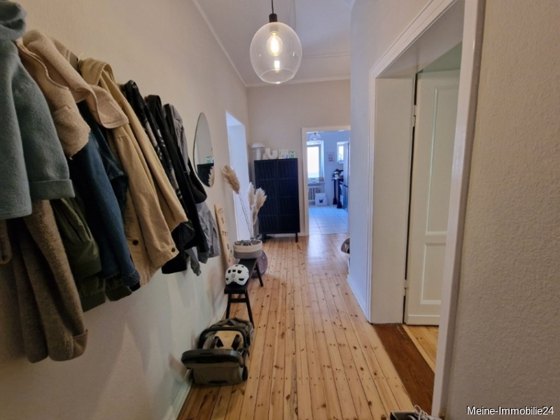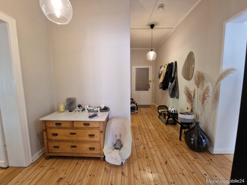 Zur Wohnung: Nach der Eingangstür betreten Sie die Diele (13,37 m²), diese hat 2 kleine Abstellräume. Von der Diele aus, gehen alle Räume einzeln ab. In den Räumen Wohnzimmer (22,64 m²), Diele (13,37 m²) und Schlafzimmer (13,28 m²) ist ein Parkett verlegt. Das wurde 2022 abgeschliffen und neu versiegelt. Das Kinderzimmer liegt zur Hofseite. Im Kinderzimmer (18,64 m²) wurde 2022 ein Vinylboden von den Mietern neu verlegt.