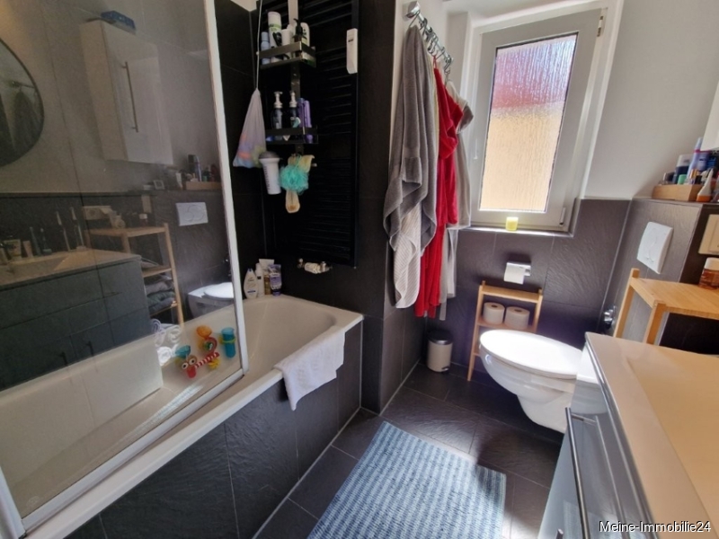 Das Bad (4,07 m²) wurde 2009 für 13.000,- € neu saniert. Die Küche (10,73 m²) wurde vor ca. 10 Jahren renoviert und bekam eine Einbauküche im Wert von 20.000,- €. Diese bleibt (ohne die Elektrogeräte) in der Wohnung. In der Küche und im Bad wurden hochwertige Fliesen verlegt. Wer eine offene Küche bevorzugt, kann die Wand zum Wohnzimmer entfernen (nach Rücksprache mit einem Statiker und der Hausgemeinschaft) und die Küche mit dem Wohnzimmer zusammenlegen. Dies schafft ein noch größeres Raumgefühl. Der Balkon wurde in 2005 für den Anteil von 10.000,- € neu errichtet. Er hat die Grundfläche von 4,60 m x 2,00 m. Dies ergibt eine zusätzliche Wohnfläche von 4,60 m². Die vorhandenen alten Holztüren wurden aufgearbeitet und mit hochwertigen Beschlägen versehen.