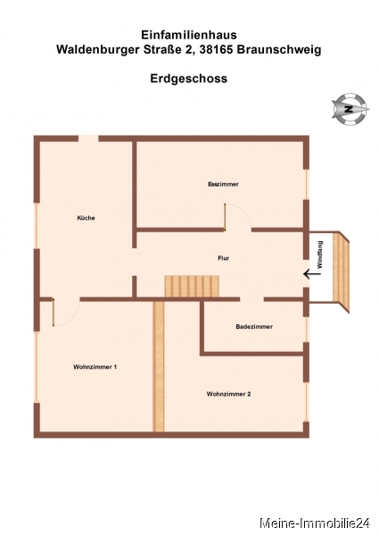 Eingangsbereich mit Windfang und geräumiger Diele. Von der Diele aus gelangen Sie in den großzügigen Wohn- und Essbereich, der an die Küche mit Frühstücksecke angrenzt. Von der Küche erreichen Sie ein Arbeitszimmer und ein weiteres Zimmer auf versetzter Ebene.