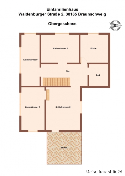 Eine Vollholztreppe im Dielenbereich führt in das 1998 ausgebaute Obergeschoss. Auf dieser Ebene befinden sich ein Badezimmer mit Fenster und Dusche, zwei Kinderzimmer, ein Elternzimmer und ein Schlafzimmer mit Zugang auf einen großzügigen überdachten Balkon in Ost-Westausrichtung.